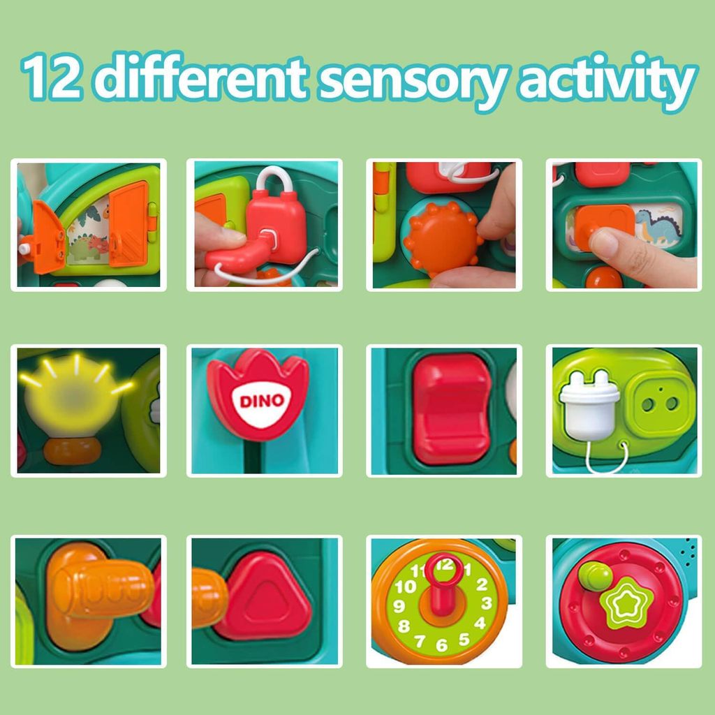 This activity board includes music, lights and sound effects, making playtime more engaging and enjoyable. The dinosaur-themed design adds visual appeal while encouraging toddlers to explore cause-and-effect relationships in a safe and fun way.