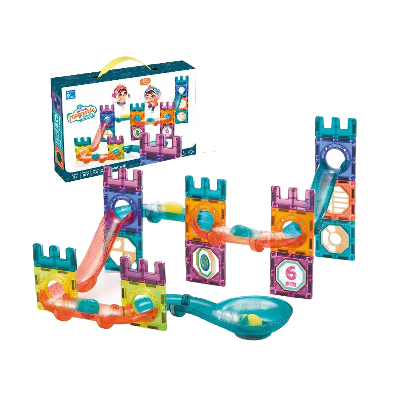 54 Pieces Magnetic Tiles Ball Run Set